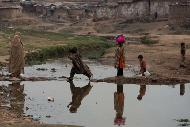 | Islamabad, Pakistán. Cruzando un riachuelo en el campo de refugiados. Nicolas Afouri. AFP. |